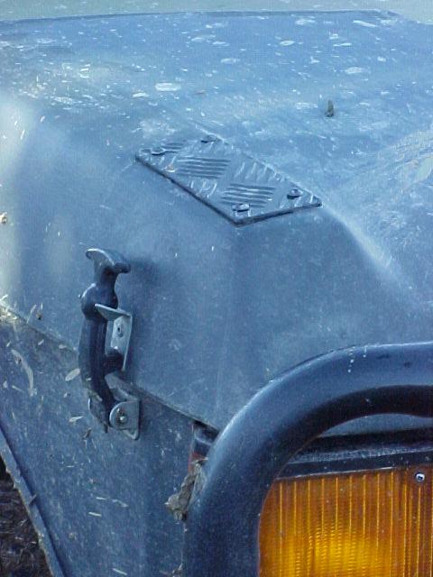 You can clearly see the join in the roof where the Range Rover below has been shortened. At the same time the original, vulnerable (and expensive) rear, side and indicator lights have been replaced with cheaper alternatives on a custom made chequer plate stripe that wraps around at the front and back. Chequerplate has also been used to make ‘solid’ mud flaps behind the rear wheels.