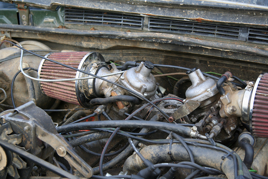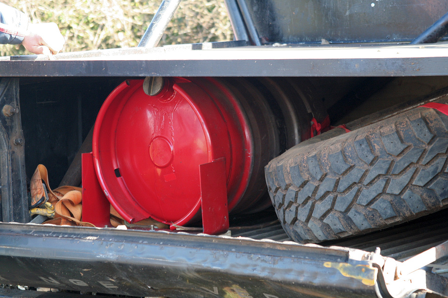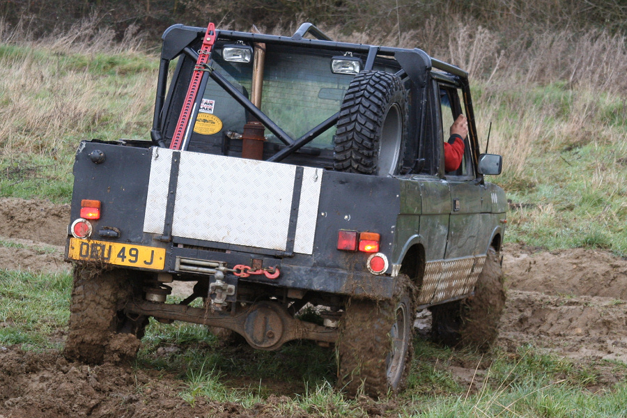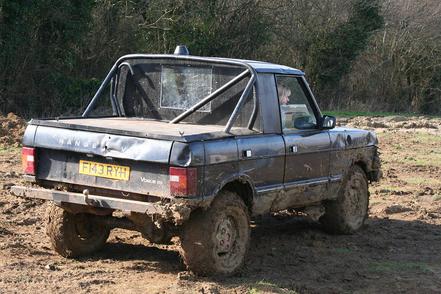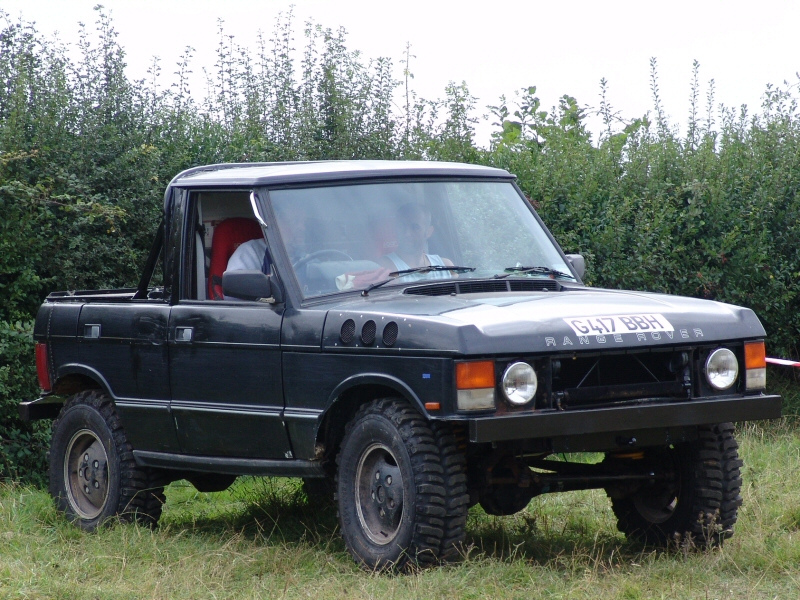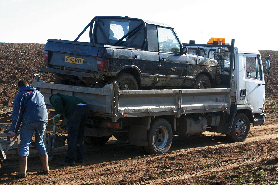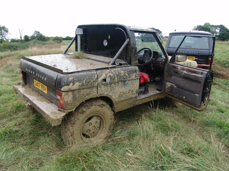 Here is another 4 door Range Rover that has been bobtailed and cut down to produce a pickup truck. Note how an aluminium beer barrel has been used as a strong replacement fuel tank. This Range Rover may no longer be road legal as it arrived on a truck. However the owner may have planned ahead just in case the motor broke when off road. It also meant that the minimum of mud was dropped on the road on the way home.