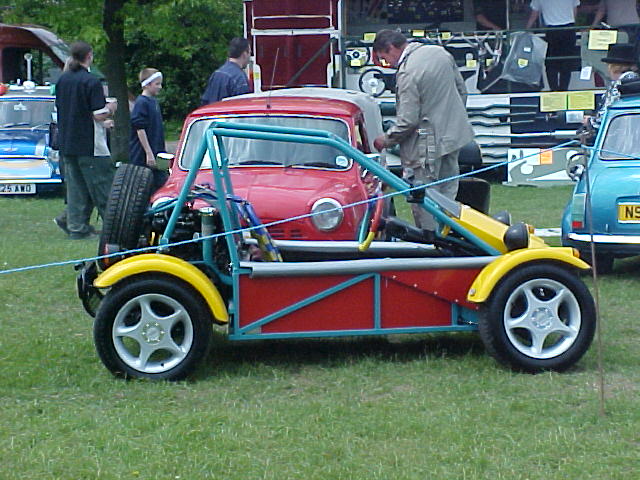 It basically uses the front end of two Minis bolted onto a steel chassis with an integral roll cage. The engine and gearbox from one of the Minis is attached to the back making it rear wheel drive and only 2 wheel drive. Obviously the Range Rover is 4 wheel drive with the engine at the front. The photographs were taken at Bristol Miniday. The Bristol Miniday, which is now actually held at Wraxall, is a good event to find out about, see and even photograph many minis. To find out the date and venue of this years mini show (which I would recommend), take a look at the Bristol Miniday web site. Here are some older (and smaller) photos of some of the same ABS Freestyles as well as another different one. All the ABS Freestyles below have a donor mini (the main one) that is the same age as my Range Rover. Maybe during this year British Leyland were using particularly poor quality steel! The photographs were taken at a previous Bristol Miniday. Home Tomcats Other Options Off Road Racers |