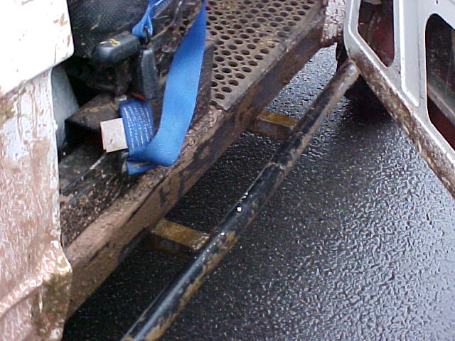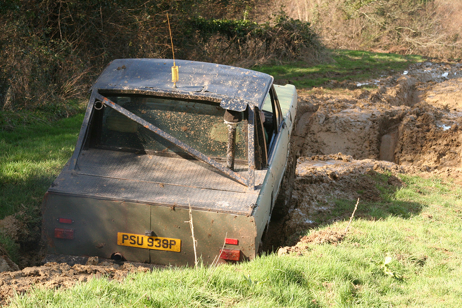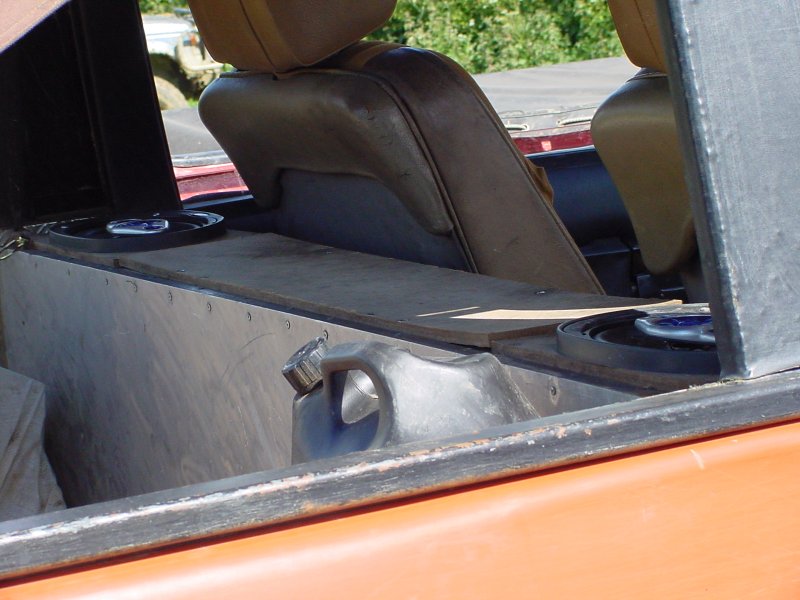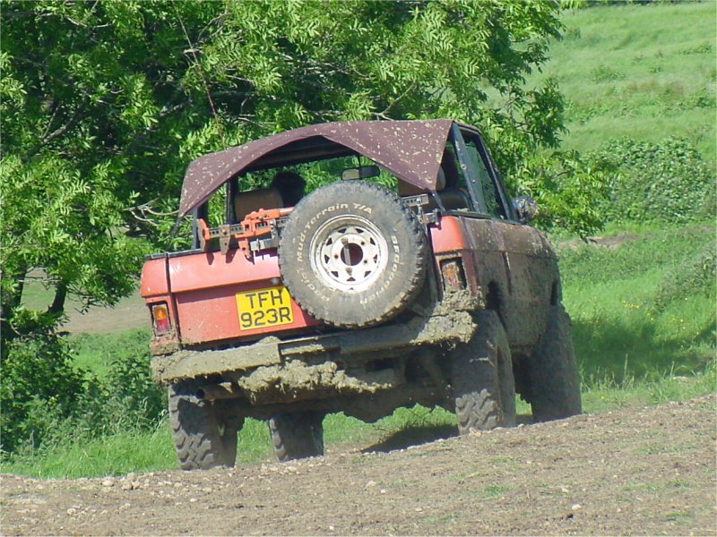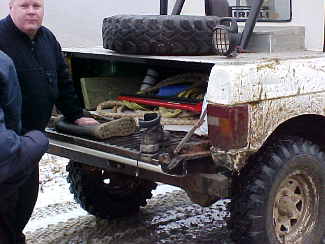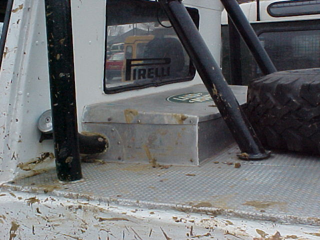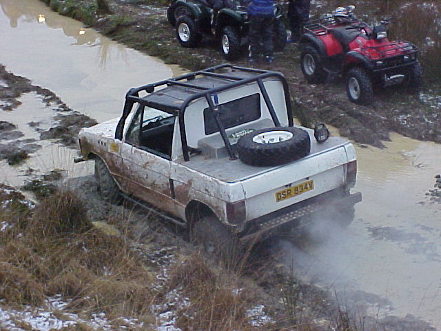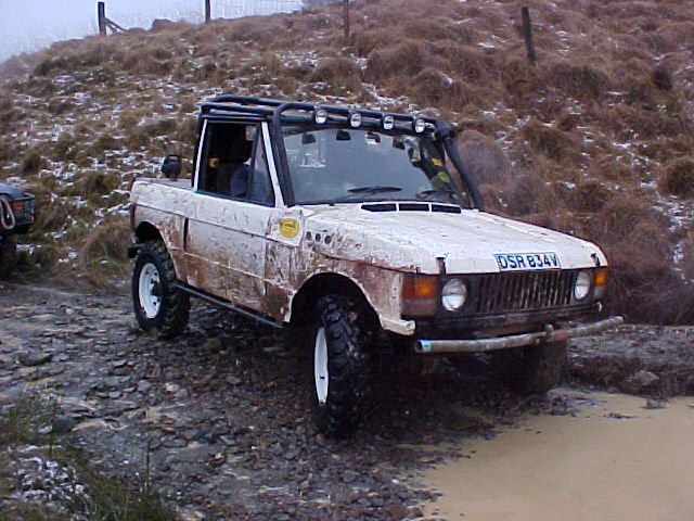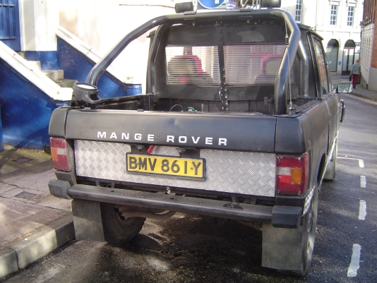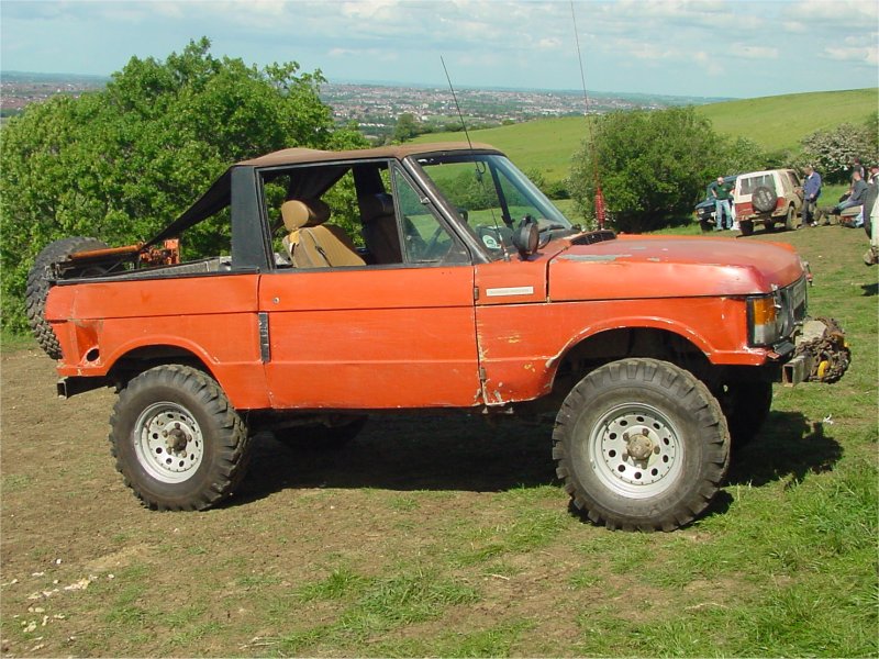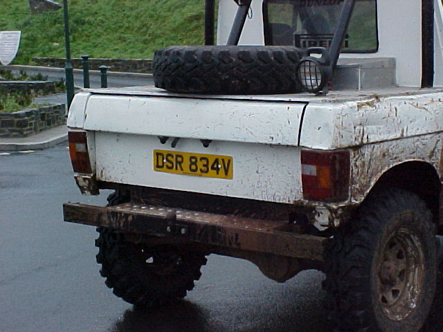 Note how air is drawn into the engine bay using fans through vents cut into the bonnet. The radiator is mounted longitudinally in the back with twin electric fans. The original Range Rover dials have been used in this bobtail Range Rover pick up and any new electrics are in waterproof enclosures with the battery mounted in the rear corner. The door trim has been replaced with sheet metal. Stormer is equipped with rocker sliders to protect the sides. The twin exhausts have been rerouted for protection. Recovery eyes have been fitted front and rear. Longranger 4x4 is the name of the company who converted this Range Rover. The company is named after an extra long Range Rover pick up conversion, one of which is used to tow Stormer’s trailer. For more details of the Longranger Range Rover pickup and the company that built it, try the Longranger web site. Instead of making use of the original tailgate, a flat sheet of metal can be used to fabricate the new rear end. It may be much easier to make, but it does not look as nice. It may however be necessary if the rear lower tailgate has rotted / rusted through (as it usually does in the same way as the upper tail gate). With the bobtail pickup below, the only rear overhang sticking out further than the rear wheels, is the substantial rear cross member. It also looks like the wheel arches have been cut out for a bit more clearance. This Range Rover bobtail pickup has been raised with 2 inch spacers on the body mounts and bigger than standard coil springs. This bobtail Range Rover pick up was not actually built by its current owner. However he does make good use of it including green laning (in Wales). Not the strong front and rear bumpers and comprehensive external roll cage. It also has very strong sills made from square section steel in addition to the scaffolding pole side steps. Stumpy (the nearly obligatory name for a bobtail) pictured below is a 3.5 V8. It was recently stripped and welded as the sills didn't exist. Actually nor did big bits of floor and the inner wings were almost completely missing too. There was actually nothing holding the wings on apart from three bolts that go to the bulkhead. All this repair work required a full 8' x 6' sheet of steel, a whole 5kg roll of wire and 5 days of working 9 am to 8 pm. The next plan is a 2" lift, followed by a 5.7 Chevy conversion when a reasonable engine can be found as Steve currently has a bigger engine in his Ford Capri than his bobtail, which he says "is not good". Thank you Steve for the photos and information. Home Tomcats Other Options Off Road Racers |