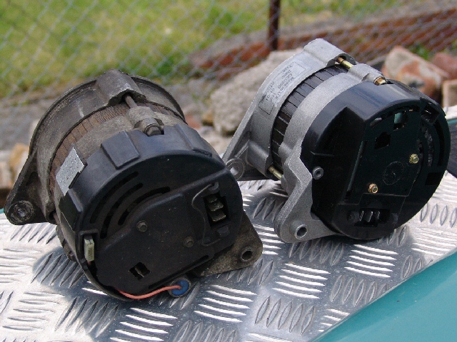 My parts supplier said the best way to find the correct replacement would be to bring the alternator along and he would see what he could find as the parts list etc was not always a good guide. He was right. The part number had been superseded and the new alternator had the wrong sized shaft. After fetching box after box from the storeroom, we found one that was the correct size (nearly, see later) and had the correct output shaft with keyway etc. However the bracket was on the wrong side. |