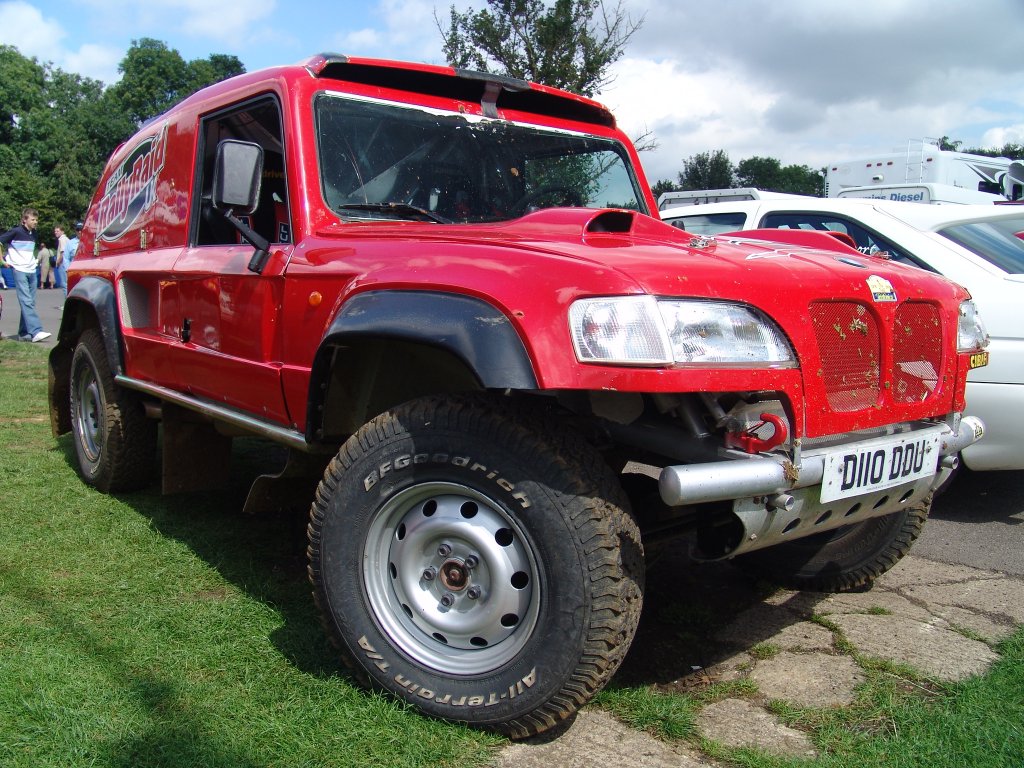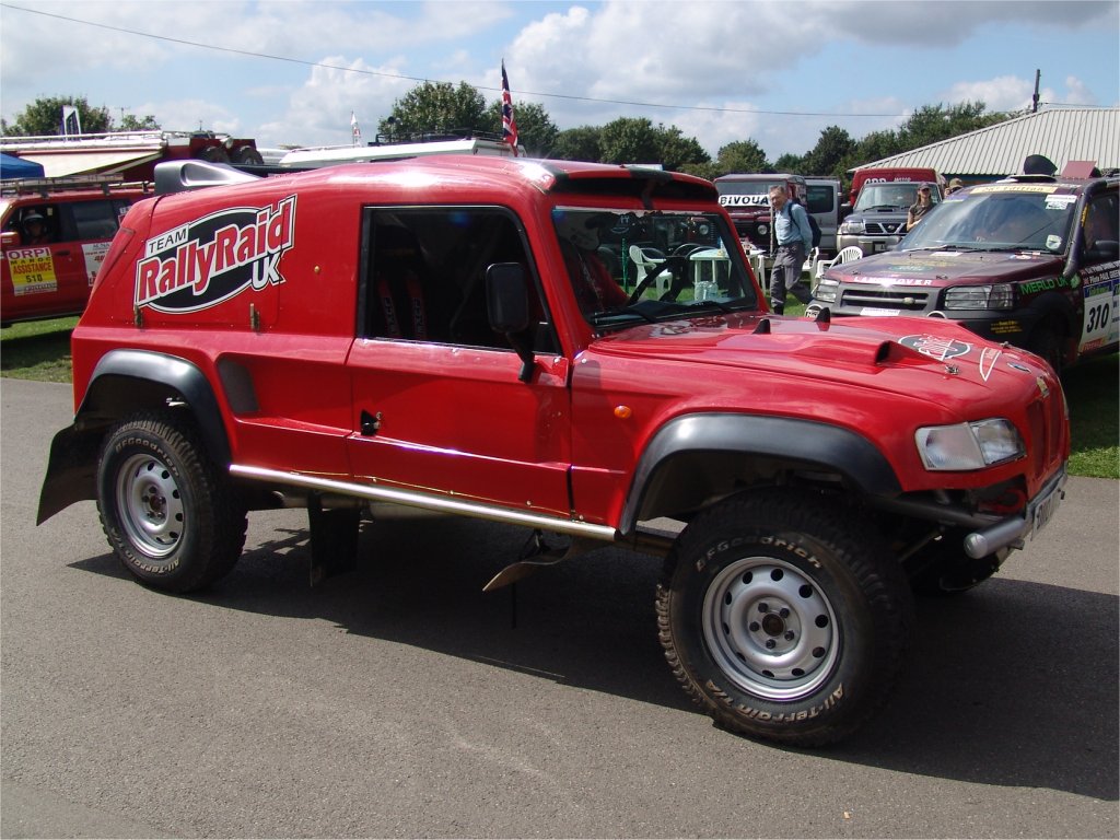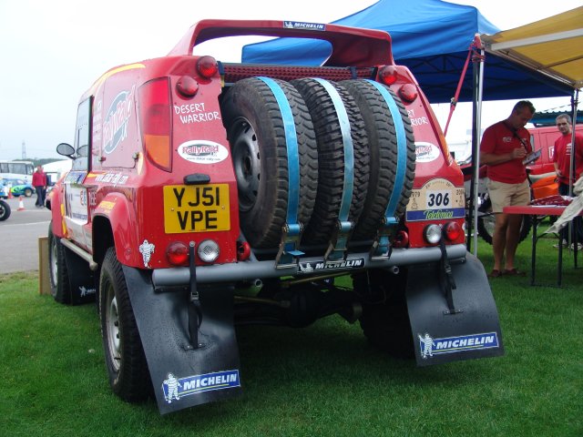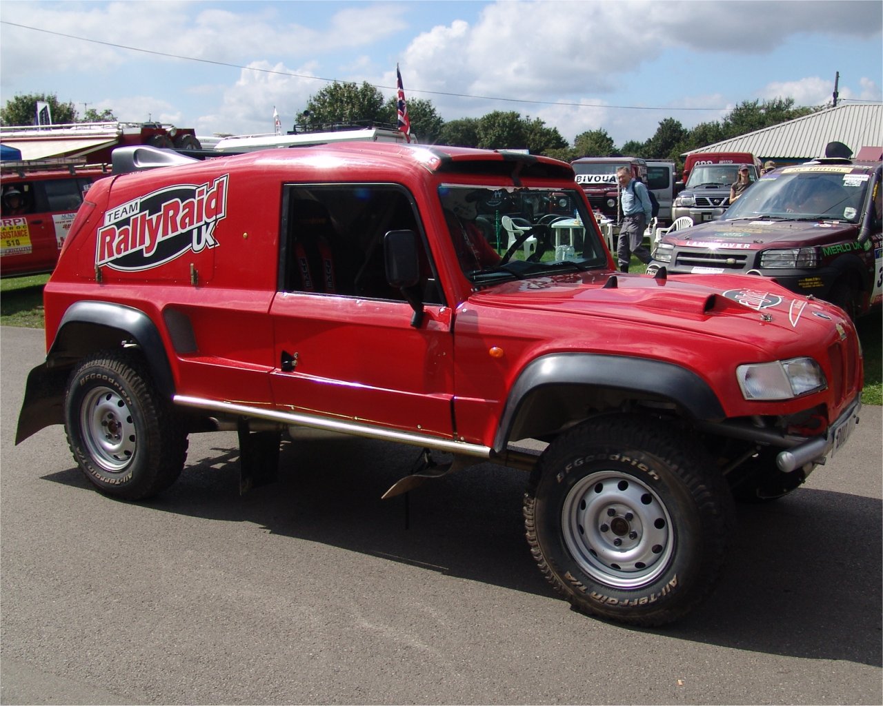 The Desert Warrior is constructed on a purpose built chassis made from 3" tubing, not a donor chassis like the Tomcat. The design of the chassis means that things like the fuel tank can be mounted lower down than in a Bowler Wildcat and the centre of gravity is lower. This makes the Desert Warrior more stable than a Bowler Wildcat. The Desert Warrior also has a longer wheelbase at 106 inches than the Bowler Wildcat or Range Rover/Tomcat at 100 inches. This makes it more stable at speed when racing in the desert, in a straight line, but harder to turn. This makes it less suitable for me as I intend to use my off-roader around a busy city. Desert Warrior WallpaperChoose the most appropriate size of Desert Warrior wallpaper for your screen. Paul is now arranging for all the parts to be made by experts in their fields eg. the body by a GRP expert. He will then be putting together a kit of parts so that other people can build their own Desert Warrior. For more details and photos of Rally Raid UK’s rally raid and Dakar successes, try (http://gallery.rallyraid.co.uk/gallery/index.asp). Home Tomcats Other Options Off Road Racers |