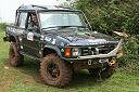 Modified Landrover DiscoveryA standard Landrover Discovery can perform well off road, but it can be expensive if you make a mistake and damage the bodywork etc. Some slight modifications like a steering guard and new wheels with mud or all terrain tyres can help. A Landrover Discovery van (known as a commercial) without windows at the back is rarer, but better as there are fewer windows to smash. It also means you can keep expensive recovery gear etc out of sight. Bobtailed DiscoveryThe off road performance of a Disco can be improved in the same way as with a Range Rover, by cutting off the back end, or bobtailing it, to produce a bobtailed Land Rover Discovery. This also helps to protect some of the vulnerable and expensive (steel) bodywork. Bobtail Discovery PickupThe next step is to cut a bit more of the back end off to produce a bobtail Land Rover Discovery pickup. On this example the cab roof has been skilfully cut and welded back together as it is a more complex shape than a Land Rover roof or even a Range Rover roof. Take a look in the photos below at the seriously strong snorkel for wading. The cover for the storage area at the back for recovery gear is also very nice. Land Rover hinges have been used. More details and pictures of Phil’s modified Disco can be found at She Loves It (http://www.shelovesit.co.uk/). Discovery Pick UpThis Land Rover Discovery has been converted into a 4 door pick up for use in winch challenge events like the Scorpion Racing Challenge Trophy. It has a winch at the front and rear as well as stowage for things like the waffles and ground anchor. However the driver (John Fair) thought the 100 inch wheelbase as well as the standard front, and more importantly, rear overhang made this Disco too long for this winch challenge event at West Harptree. Discovery Monster TruckI could in effect build a small monster truck loosely based on a Landrover Discovery. The axles, suspension, wheels etc are not standard, and the body has been slightly modified. While I was watching it did not get stuck, even thought the driver was attempting the same obstacles as the other vehicles that were getting stuck. This was partly the skill of the driver, but also because it is a very capable vehicle. The wider track and the big tyres running at 7psi helped! More details and pictures of Chris’s monster Disco can be found at She Loves It (http://www.shelovesit.co.uk/). Further ReadingI don’t copy other peoples’ (copyright) material, so if you would like to know more, take a look at; Meet the Defender Eater Modified discovery, Land Rover Owner Magazine, Spring 2006 page 48 Home Tomcats Other Options Off Road Racers |