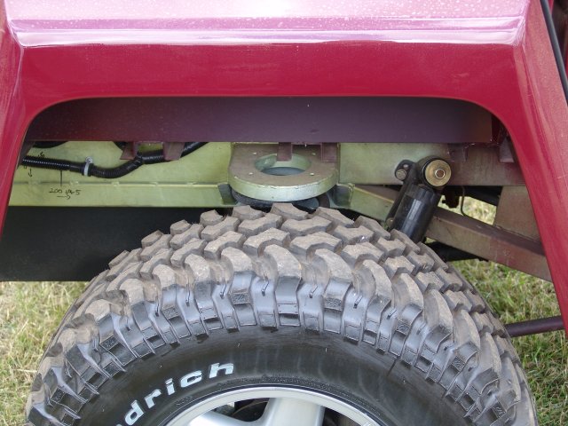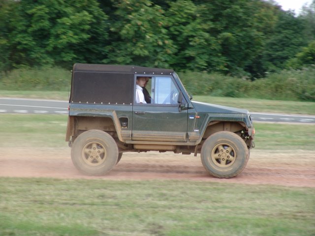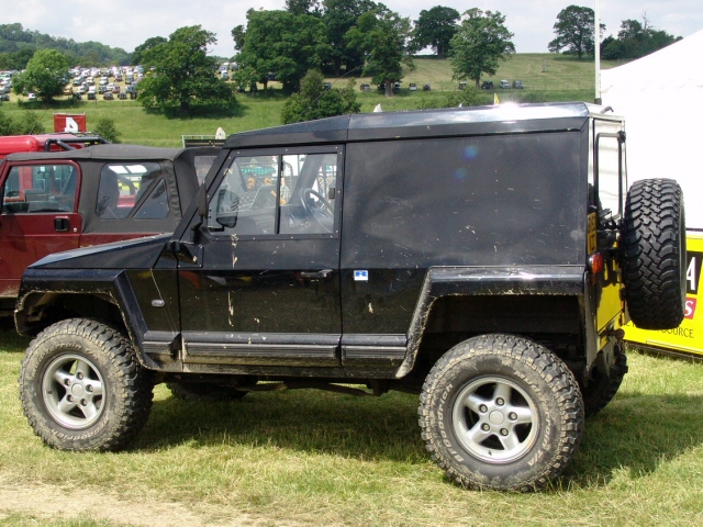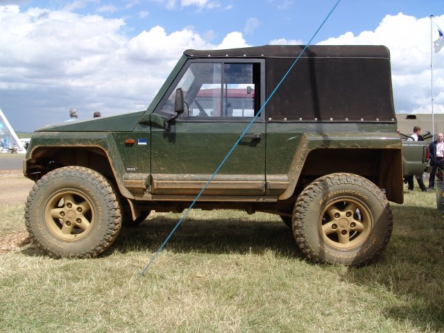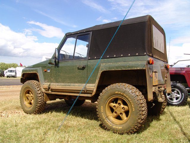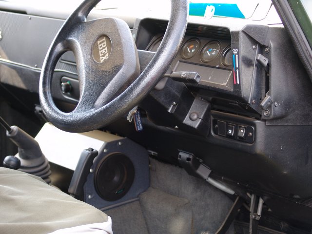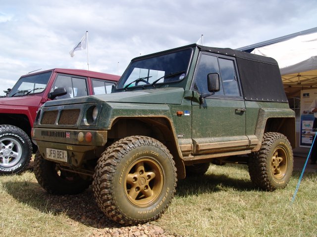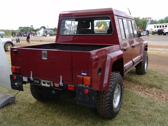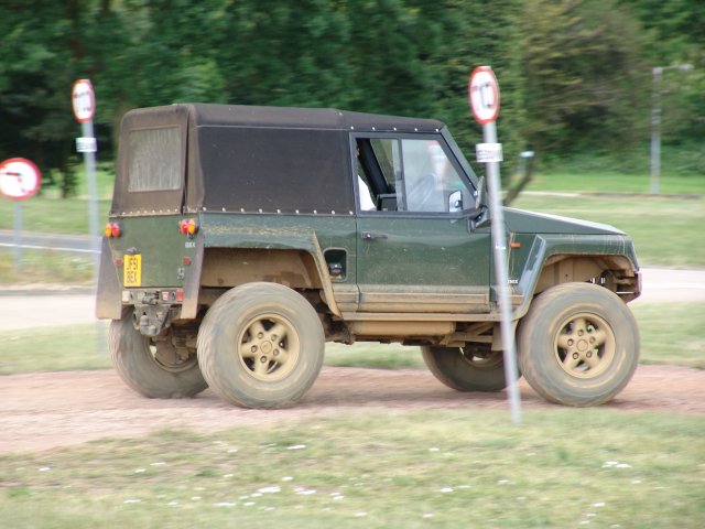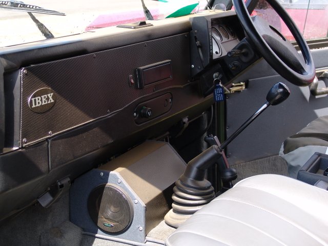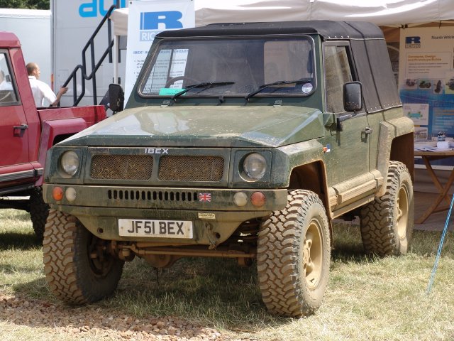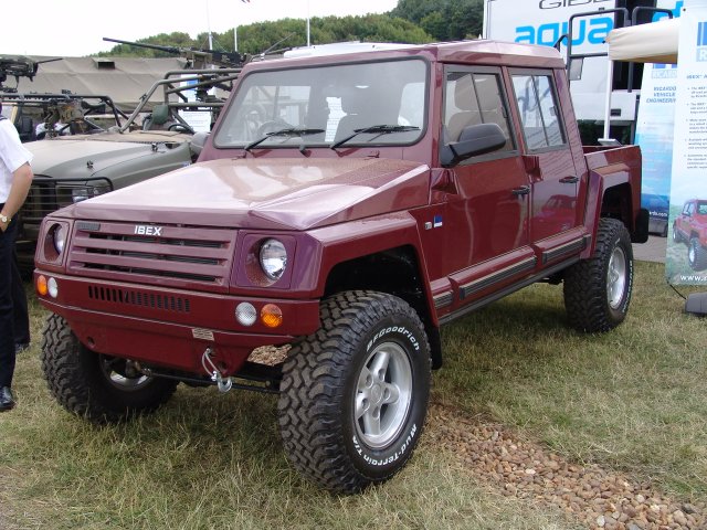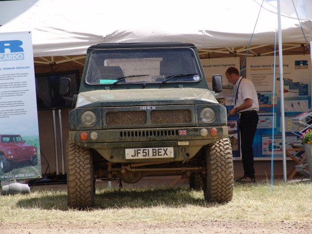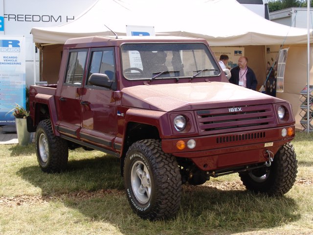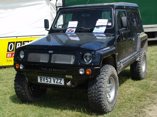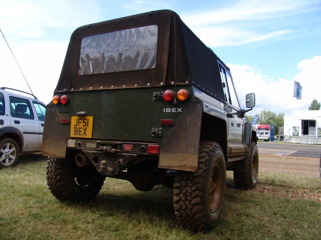 The most obvious features are the short front and rear overhangs (depending on the wheelbase and body style) which give the Ibex excellent approach and departures angles. It also has a short sloping bonnet for better visibility. You may also notice that many of the parts on the Ibex look familiar as it uses the powertrain (and other bits) from the Landrover Defender. The axles are attached using long travel coil sprung suspension to give a high degree of axle articulation (and to keep the wheels on the ground). The Ibex also has a Foers Vector winching system. This is described by Ricardo on their factsheet as, "Ibex vehicles can be constructed with an advanced centre mounted system which enables multi-directional winching from front and rear cable fairheads. In addition to simple fore/aft winching, this patented technology enables the vehicle to pull in any direction, rotated through angles of up to 180 degrees and using anchors as appropriate, to traverse dangerous slopes in 'cable car' mode by driving along its own fixed cableway. When specified by the customer, this winching facility must be built into the vehicle at the construction stage, although the winch itself may be purchased separately and fitted at a later date." What it doesn't say is that putting the winch in the middle leaves the front approach angle unaffected and keeps the heavy weight in the middle of the vehicle away from the mud and water. I believe it used to be supplied by Foers Engineering (John Foers can be seen in the background of one of the photos), but the Ibex is now manufactured and distributed by Ricardo. It is available fully built or "supplied as body/chassis kits for self build applications". More details about the Ibex can be found on the official Ricardo web site (http://www.ricardo.com/ibexvehicles/intro.htm) or (http://www.ibexvehicles.com/). Home Tomcats Other Options Off Road Racers |