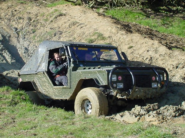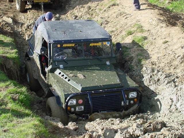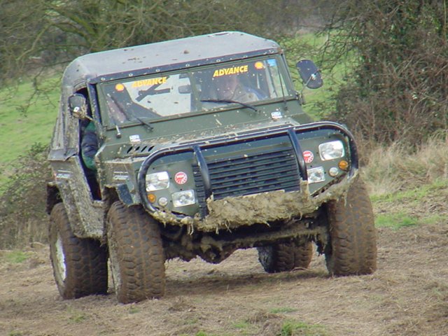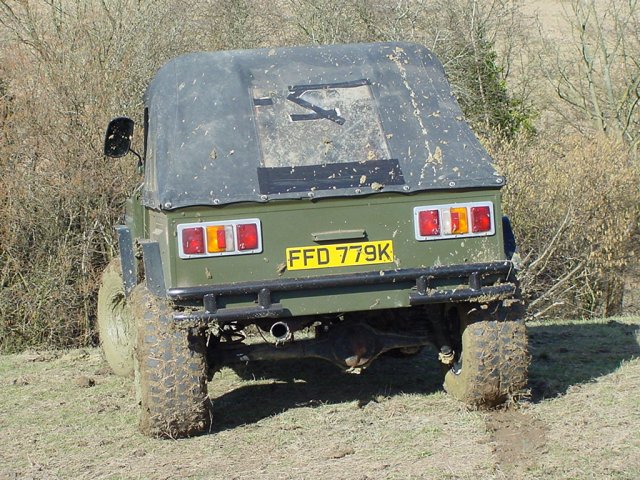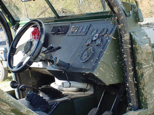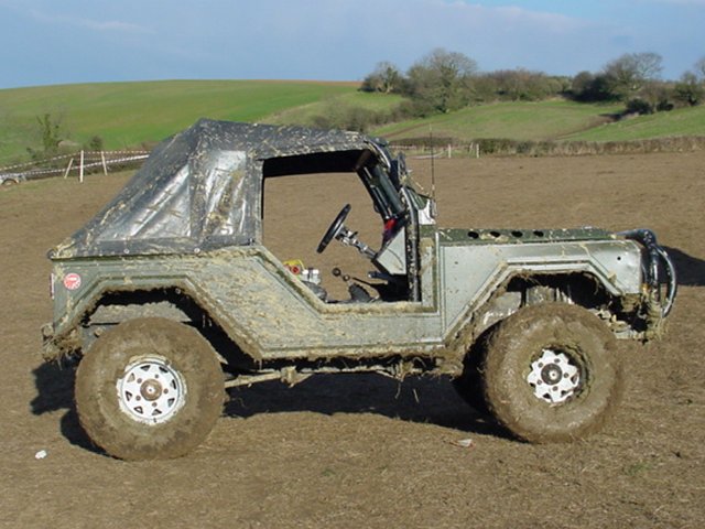 According to the driver, this hybrid Landrover is built on a Range Rover chassis cut down to give an 88 inch (88") wheelbase with a total length of 100 inches (100") which is the length of the Range Rover chassis before it was cut down. It has a homemade body with a flat front and back end. It is equipped with a Rover V8 engine.