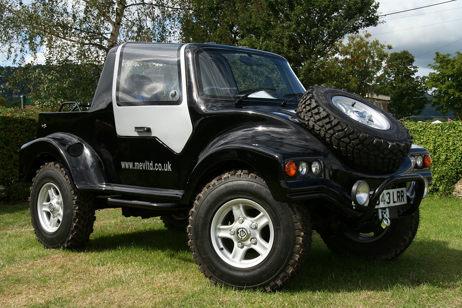 The MEV 4x4 (named after the manufacturer Mills Extreme Vehicles Ltd, based in Ratcher Hill Quarry, Notts) has a purpose built tubular steel chassis and fibre glass body (both built by MEV Ltd), but uses many of the components including all the drive train from a single donor vehicle, a Classic Range Rover.