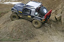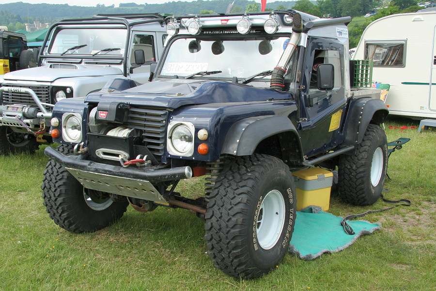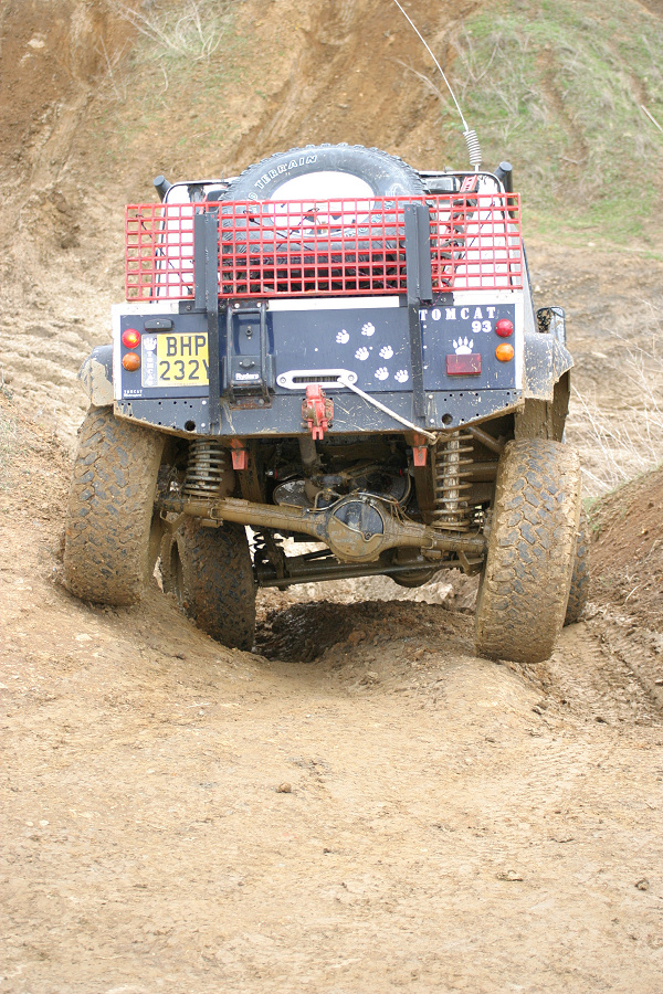 "The axles are standard except the swivels are castor corrected in front with std panhard rods and castor corrected trailing arms in the rear. It has Maxidrive locking diffs front and rear. Tyres are stated at 35” but sit nearer 37 Fedima sirocco on Mach 5 rims with a 5.5” offset, giving it as wide a track as possible without running spacers. Something that as an automotive design engineer I am not anti due to CV loading, purely due to laziness over number of bolts to undo." "The Tomcat cage is fitted with tree bars top and bottom to try and reduce body damage, it has sufficient wattage on the front to turn nigh to day at the flick of a switch. The usual underbody protection. Warn 8274 running 16mm Plasma up front Ryders XR9 in rear running 12mm plasma. On the back I have waffle boards and HiLift, twin optima batteries and split charge, the tank, and with the normal Tomcat set up a raised radiator." "Hand brake is one of the superb items by X Eng and whilst only fitted recently has impressed me beyond belief. X Eng will also be trialing some new ideas on it later in the year, which should I think make it unstoppable, the vehicle that is, it can still be let down by driver courage." "The cab has a terratrip, full front and rear winch controls with safety lock outs, Maxidrive controls, and full autocom intercom, supplied by the previous owner who is Mr autocom, but is otherwise reasonably standard. Unlike the racing guys the engine does not intrude into the cab so it is comparatively spacious." Here are some pictures supplied by Mark of his Tomcat in action. Very impressive. Home Tomcats Other Options Off Road Racers |