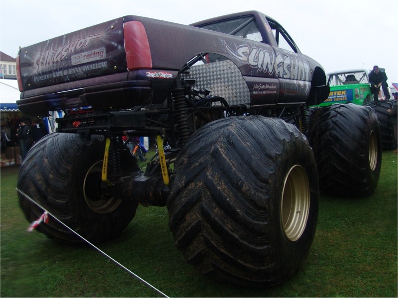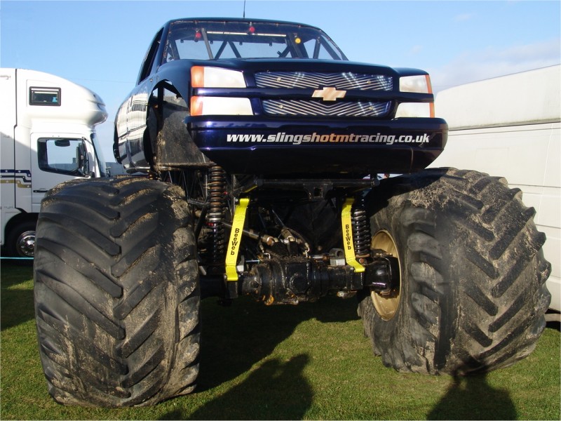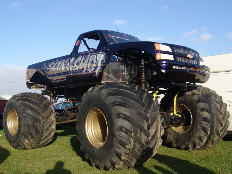 Karl Swallow drives the Slingshot monster truck which has a body from a Chevrolet Silverado.
