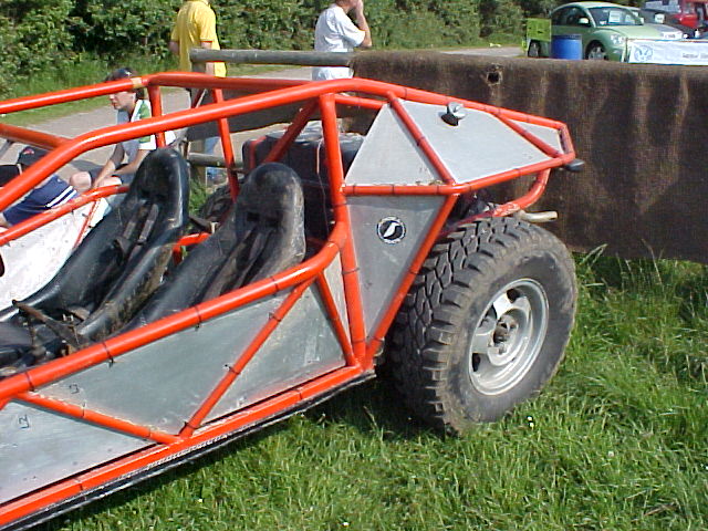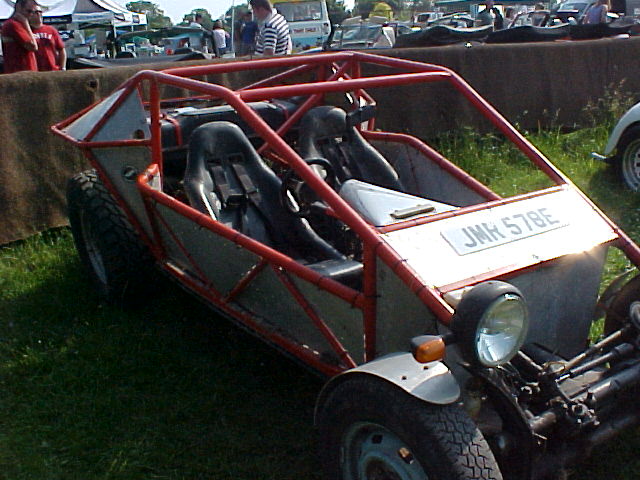 This off road buggy is very similar to a sandrail in that it uses parts from a Volkswagen Beetle, but it looks like it has been designed for use off-road in this country, in the mud.