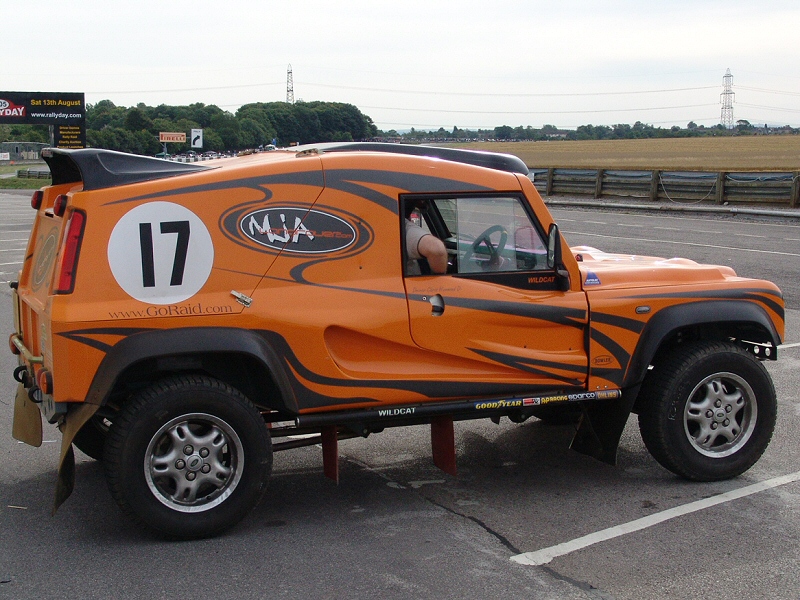 They were also offering (expensive) rides in a Bowler Wildcat around the circuit. This off-road rally car was holding its own on a proper (tarmac) race circuit against the other rally cars which are optimised for use on roads. I believed it is powered by a 5 litre Rover V8 engine (it did not belch lots of black smoke like the oil burners). It also has an enclosed back. I also got some pictures from all angles of the Wildcats parked in the paddock. I believe the Bowler Wildcat below is driven by Nick Tidboald in the Hill Rally Championship. More details about Go Raid and there support for Bowler Wildcats competing as part of the Bowler-Spirit Off-Road racing team in events such as the Dakar Rally can be found at the Go Raid web site (http://www.goraid.com/). These are not the only Bowler Wildcats I have photographed. There is another Bowler Wildcat and another Bowler Wildcat at the Castle Combe circuit. Home Tomcats Other Options Off Road Racers |