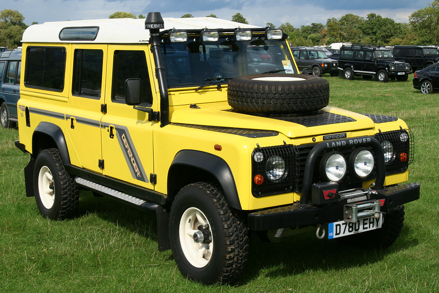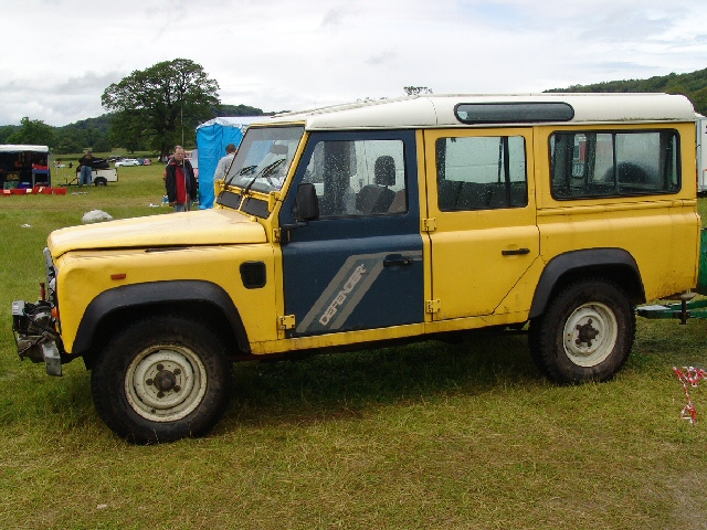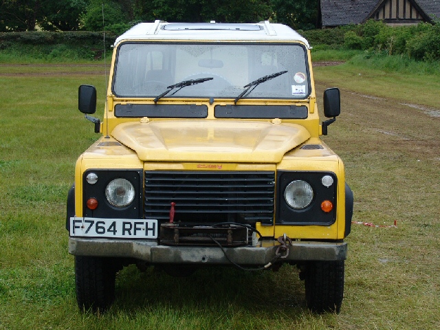 This Defender 110 (called Dirty Dog) is being used as a tow vehicle, which is what I plan to do. I like the black wheel arches and the black vent covers (below the windscreen). I am also thinking about adding high level lights (indicator, stop and tail) at the back, but there is some trim and speakers in the way. This Landrover is only fitted with a second pair of indicators. Yellow G4 Landrover Defender 110Here is a limited edition G4 Landrover Defender 110 station wagen used as a hot air balloon support or 'chase' vehicle, while at the same time advertising a Landrover Main Dealer. Yellow Defender 110 CountryA yellow V8 Defender 110 Country with Mach 5 wheels, chequer plate on the wing tops and bonnet and an A-bar with a pair of auxiliary lights. Not sure about painting the wheels white or the free wheel hubs (which I thought were only useful on selectable 4 wheel drive vehicles), but otherwise, looks good! Yellow Defender 90Another yellow Landrover (at least under the mud). It has nice Mach5 wheels, however it is only a Defender 90. Further ReadingI don’t copy other peoples’ (copyright) material, so if you would like to know more, take a look at;